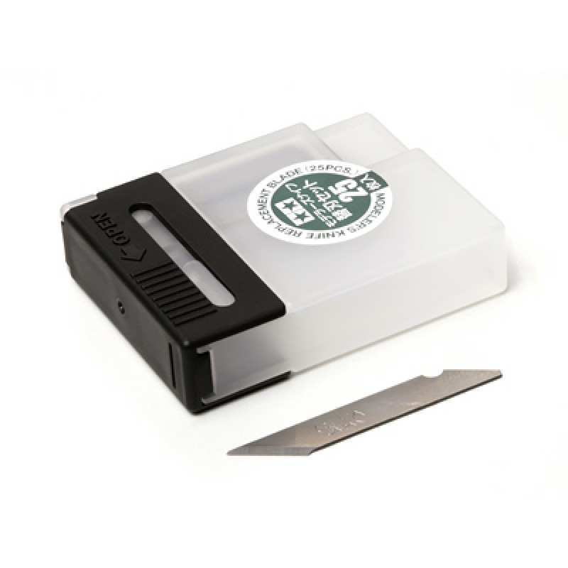 細かな部品のパーティングライン仕上げや、人形改造のパテ盛り後の整形など、細かな作業が得意なモデラーズナイフ。それだけに、切れ味が鈍ってきたら早めの交換がポイント、作業も効率よく進みます。使用済みの刃を入れるケース付き。