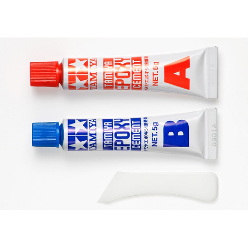 メイクアップ材シリーズ No.100 タミヤ エポキシ接着剤 TAMIYA EPOXY CEMENT Item No:87100 2009年2月21日(土)ごろ発売 475円(本体価格440円) 【 エッチングパーツなどを強力に接着 】 エッチングパーツやダイキャストパーツなどの接着に最適な5分硬化タイプの2液混合型エポキシ接着剤です。硬化するまで余裕があるので、接着位置の微調整も可能。また、瞬間接着剤のように白化することがなく、衝撃に強いのも特徴です。主剤5g、硬化剤5g