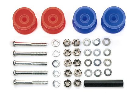 > TAMIYA田宫模型 > 田宫四驱车 MINI4WD > 四驱车导轮 > TAMIYA 田宫 四驱车 低摩擦双层导轮 15457 LOW FRICTION PLASTIC DOUBLE ROLLERS(RED & BLUE/13-12mm) 2段低摩擦プラローラーセット(赤・青13-12mm)