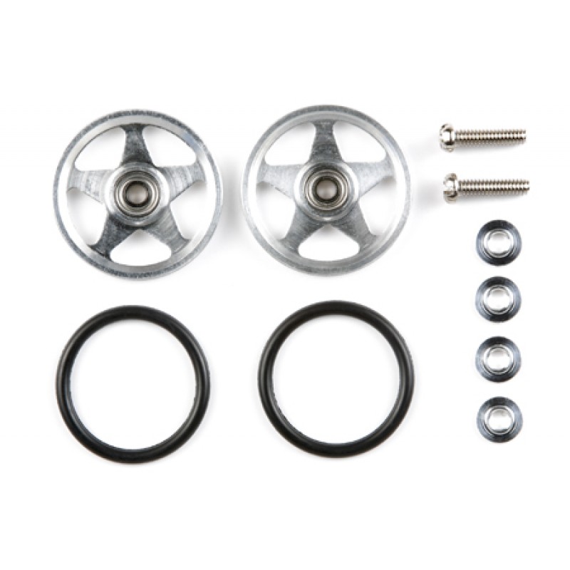 > TAMIYA田宫模型 > 田宫四驱车 MINI4WD > 四驱车导轮 > TAMIYA 田宫 四驱车 19mm五星胶边 铝合金 轴承导轮 15404 19mm ALUMINUM BALL-RACE ROLLERS (5-SPOKE TYPE) 19mmアルミベアリングローラー (5本スポークタイプ)