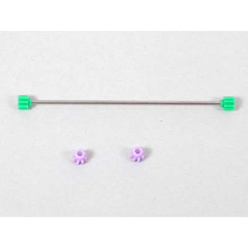 GP.205 1.4mm中空軽量プロペラシャフト (スーパー1・TZシャーシ用) モーターパワーをフロントに伝達するプロペラシャフトは駆動系のポイント。キット標準のプロペラシャフトに比べて軽く仕上げ、スピードアップに効果的。モーターにも取り付けられるパープルカラーの樹脂製ピニオンギヤも2個セットしました。 (ITEM 15205) ★スーパー1・TZシャーシ用
