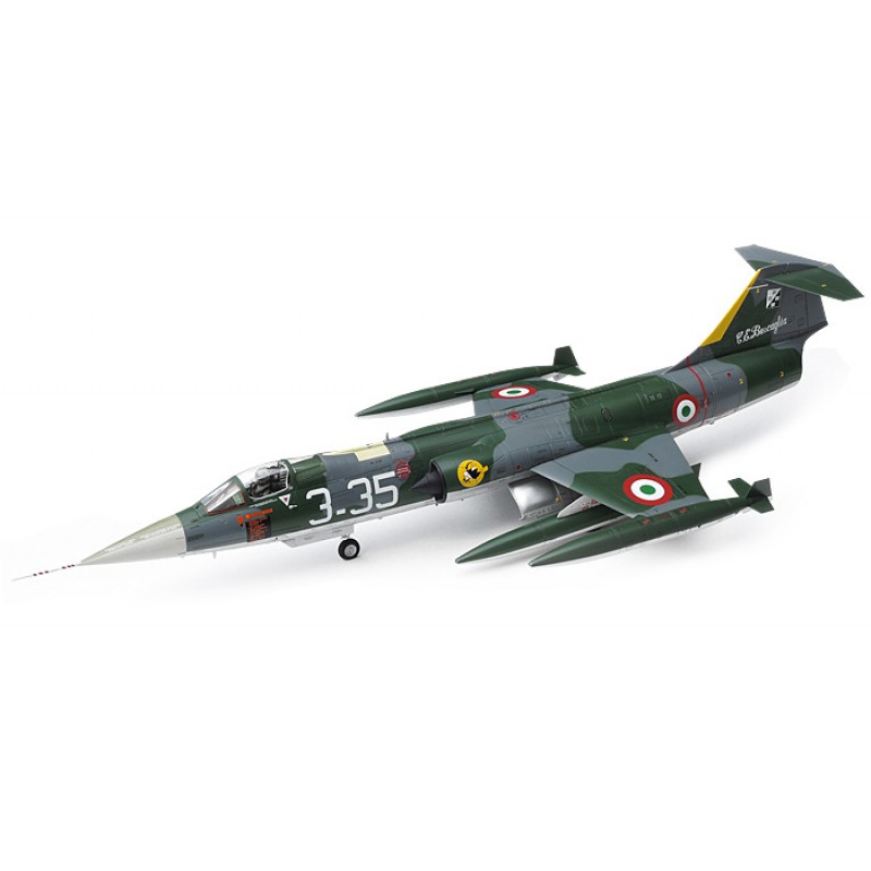 【 模型要目 】 傑作戦闘機F-104 G/Sスターファイターのプラスチックモデル組み立てキットです。★1/32スケール、全長521mm、全幅241mm。★ロケットを思わせる胴体に小さな主翼を配した精悍なスタイルを存在感十分にモデル化。★J79ターボジェットエンジン本体も細部までリアルに再現。★射出座席はマーチン・ベイカー製とロッキード製の2種類から選べます。★風防やコクピット後部機体パネル、20mmバルカン砲点検パネルなどは開閉選択式。★増槽や空対空ミサイルなど兵装パーツも豊富にセット。★新たに追加されたイタリア空軍パイロットの人形が臨場感を高めます。★オールカラー24ページの資料写真集付き。※機体パーツはイタレリ社製。