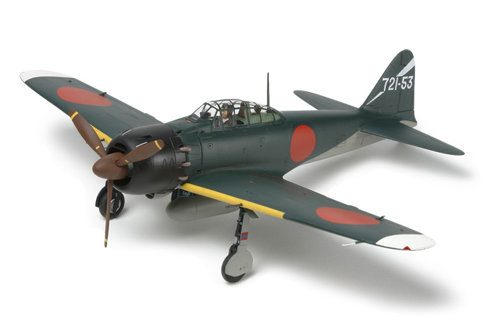 太平洋戦争を通して日本海軍の主力戦闘機として飛び続けた零戦。中でも大戦後半、高速重武装のアメリカ軍戦闘機に対抗するために登場した「五二型」のプラスチックモデル組み立てキットです。徹底的な実機取材に基づいて流れるような機体ラインやエンジンカウルの繊細なカーブも忠実に再現。高密度な仕上がりの操縦室内や、奥行き感を表現した主脚収納庫も見どころです。主翼フラップは上げ下げの状態を選べ、カウルフラップは開閉選択式。「永遠の0」の主人公、宮部久蔵の搭乗機をはじめ、同じ鹿屋基地第七二一航空隊に所属した設定の景浦機、大石機の3種類のマーキングを再現するスライドマークが付属します。★全長190mm、全幅229mm。★搭乗員の人形5体付き。(写真はキットを組み立て塗装したものです)