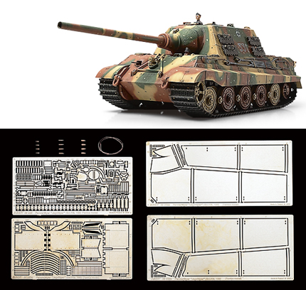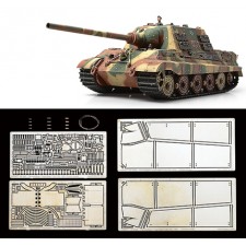 【 模型要目 】 当時、世界最強と言われた火力と防御力を兼ね備えた重厚感あふれる姿を実感豊かに再現して好評の、1/35ヤークトタイガー初期生産型のキットに、精密再現で定評のあるアベール社製ディテールアップパーツを組み合わせたスペシャルセットです。エッチングパーツは「ヤークトタイガー用エッチングパーツセット ベーシック」と「ヤークトタイガー用フェンダーエッチングパーツ」の2種類。ベーシックは様々な装備品の留め金をエッチングパーツで再現。真ちゅう削り出しパーツや0.3mmのワイヤーもセットしました。フェンダーは、薄い金属板の質感がエッチングパーツならでは、凹んだダメージ表現も手軽です。ヤークトタイガーのキットは、キングタイガーよりも延長された車体はもちろん、予備履帯ラックやジャッキなど初期生産型の特徴を余すことなくモデル化。別々に購入するよりもお得な価格設定も魅力です。