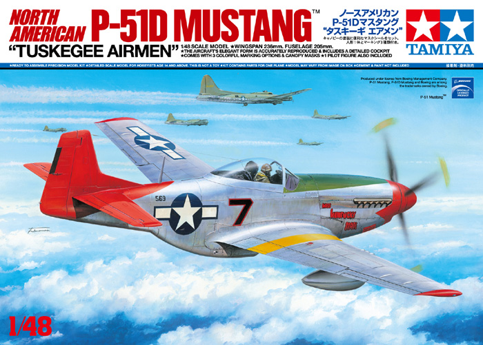 > 静态模型 > TAMIYA 田宫 军士模型 北美 野马轰炸机 塔斯基吉飞行员 25147 ノースアメリカン P-51D マスタング“ タスキーギ エアメン” NORTH AMERICAN P-51D MUSTANG “TUSKEGEE AIRMEN”